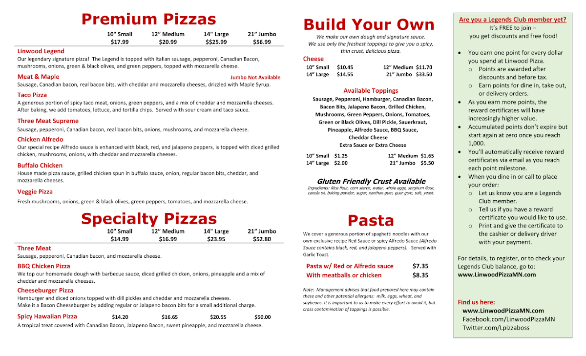 Welcome to Linwood Pizza, a hidden gem located in Wyoming, Minnesota. This charming eatery offers a menu designed to satisfy every craving, from delectable appetizers to mouthwatering specialty pizzas.